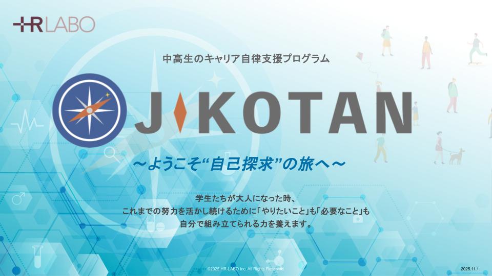 キャリコンサロン運営会社のHRラボ株式会社では、福岡市立城香中学校にて、キャリア教育プログラム「JIKOTAN ~ようこそ、自己探求の旅へ~」を実施しました。 本プログラムは、中学1年生約70名を対象に、進路や将来を考えるうえで大切な「自分の興味や価値観、強み」を発見し、「自分らしいキャリア」を主体的に考える力を育むことを目的としています。