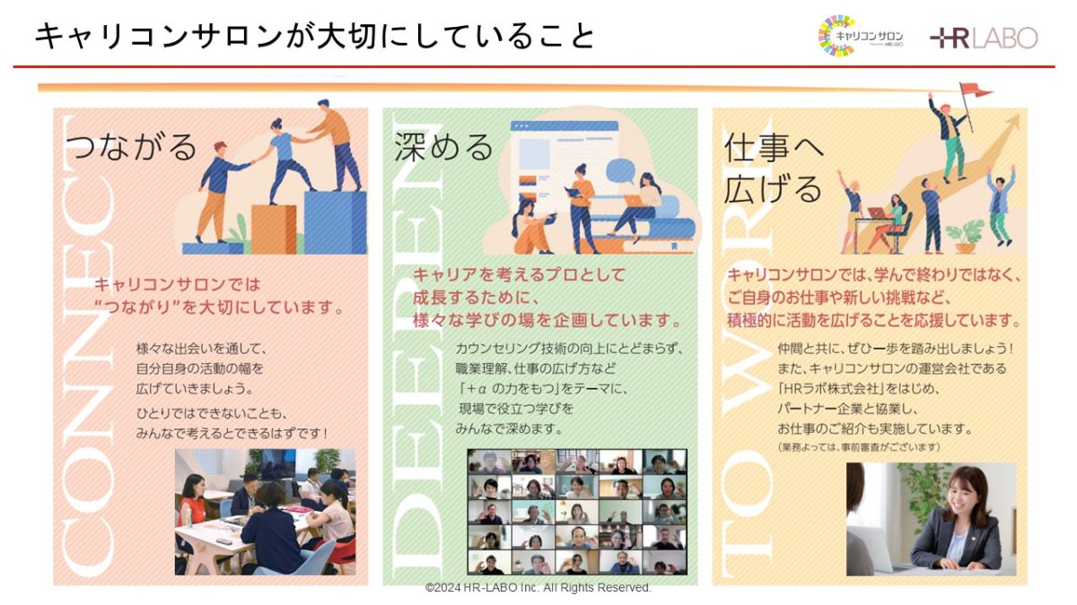 キャリア支援者がつながり、学びを深め、仕事へと広げていくことを目的としたコミュニティです。