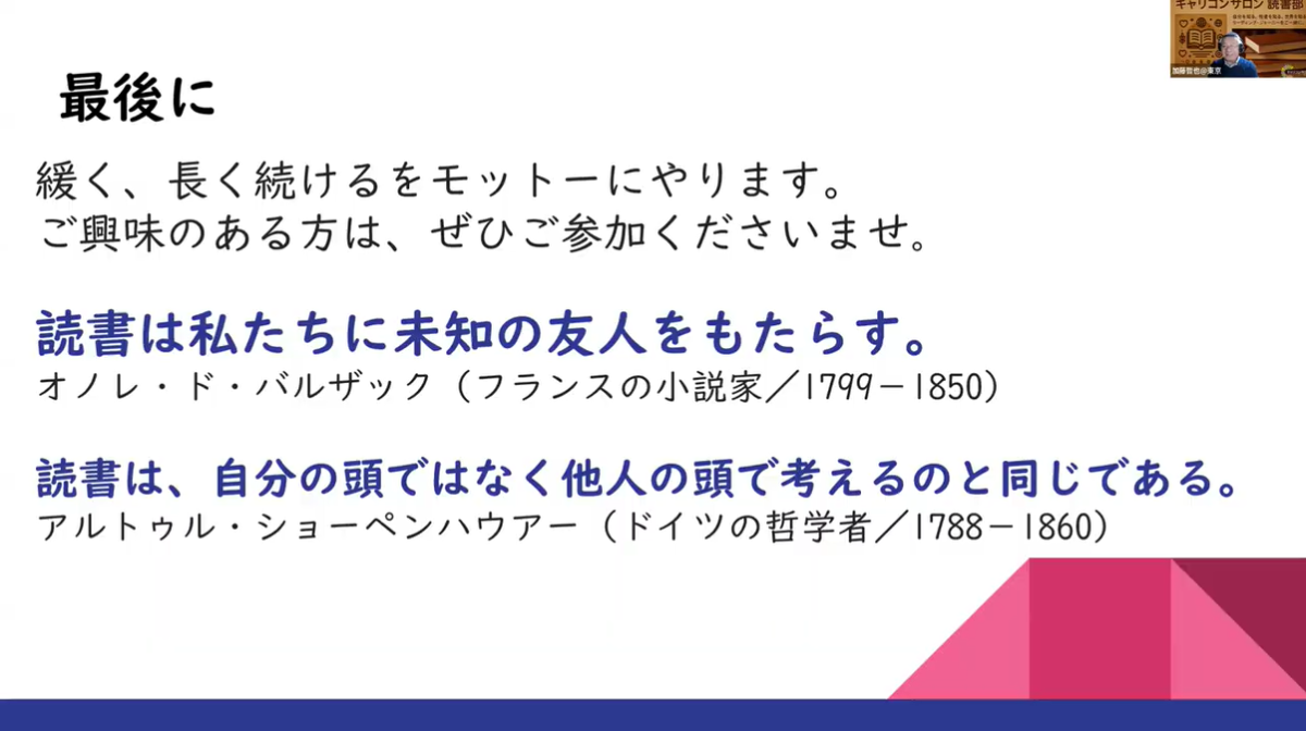 ・読書部参加のハードルがそれほど高くないので今度参加してみようと思いました。