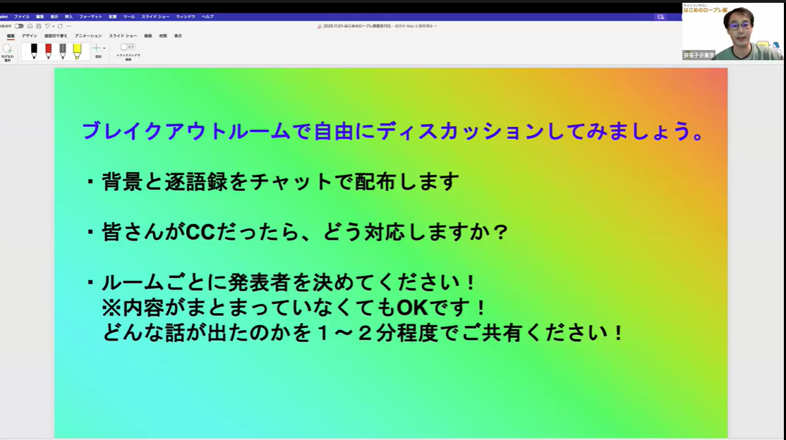 グループディスカッションでは、質問の工夫、場の温度感の調整、沈黙の意味づけなど、実践的な視点が交わされました。