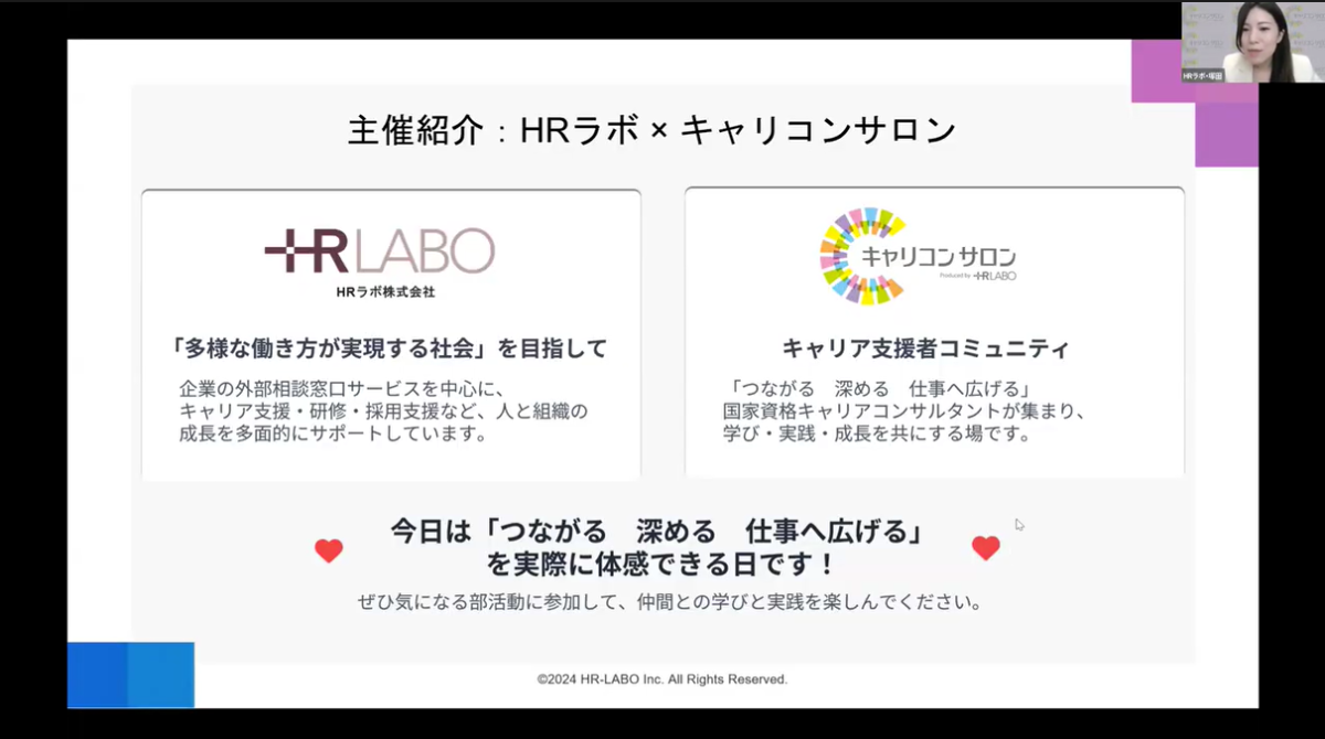 冒頭では、キャリコンサロン代表・塚田亜弓より