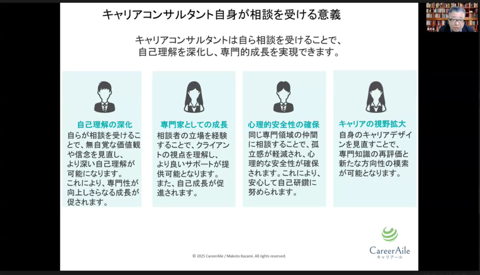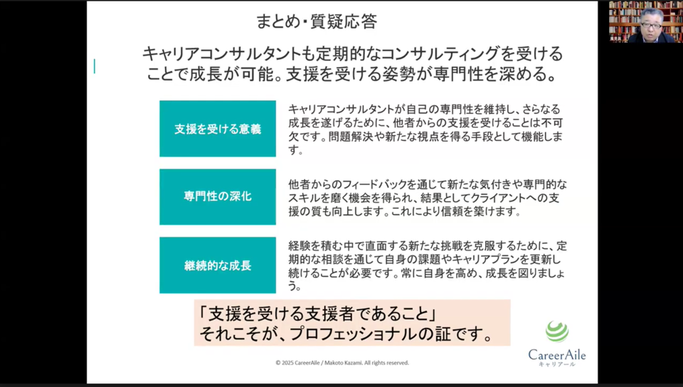 この講演は、キャリアコンサルタントという専門職の在り方を、静かに、そして力強く問い直す機会となりました。