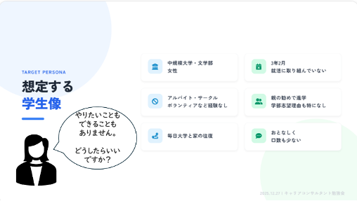 そこで今回は、自己分析を“やらせる”のではなく、“取り組みやすくする”ために、どのような問いや関わりが有効なのかを考えることを目的に、キャリア支援者向けワークショップを開催しました。